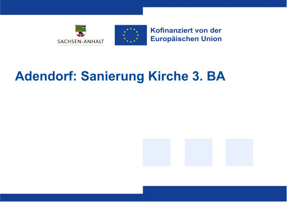 | 1. BA Statische Sicherung der Kirche gefördert durch: Land Sachsen-Anhalt, Lotto-Toto GmbH Sachsen-Anhalt, Deutsche Stiftung Denkmalschutz und Evangeliche Kirche in Mitteldeutschland. Aktuell beginnt ein weiterer Bauabschnitt. |